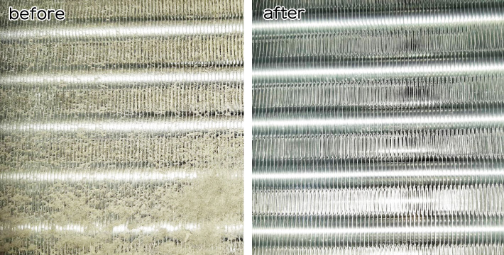 エアコンを分解した所、熱交換器に埃、カビが詰まっており効率が低下しておりました。